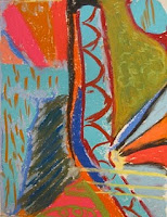 Hmmm. My heart sank but I knew she was right. Lack of structure in my work is the biggest criticism I get and something I always struggle with, being so involved in color. But I didn't want to touch it. I didn't want to lose the fluidity, the spontaneity. But I've also been told by many a teacher and mentor to NOT get attached to parts of a painting and try to work around them. It never works, and I have confirmed that before. So, I let the painting sit for many weeks. I looked at it frequently but separated myself emotionally from what excited me about it. One day, I just knew what it needed and launched in as though it was a whole new painting. (bottom) There is very little of what I loved about the original left, but it is a far superior painting. And I like it more than the original stab. This is what my friend said: "Oh! Divine, dreamy marvelous beautiful!"